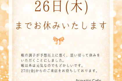 喉の不調により26日までお休みいたします。