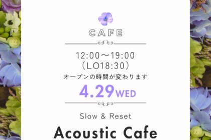 4月29日(祝)はオープンの時間が12時00分になります。 12:00~19:00 (LO 18:30) ご来店お待ちしております。