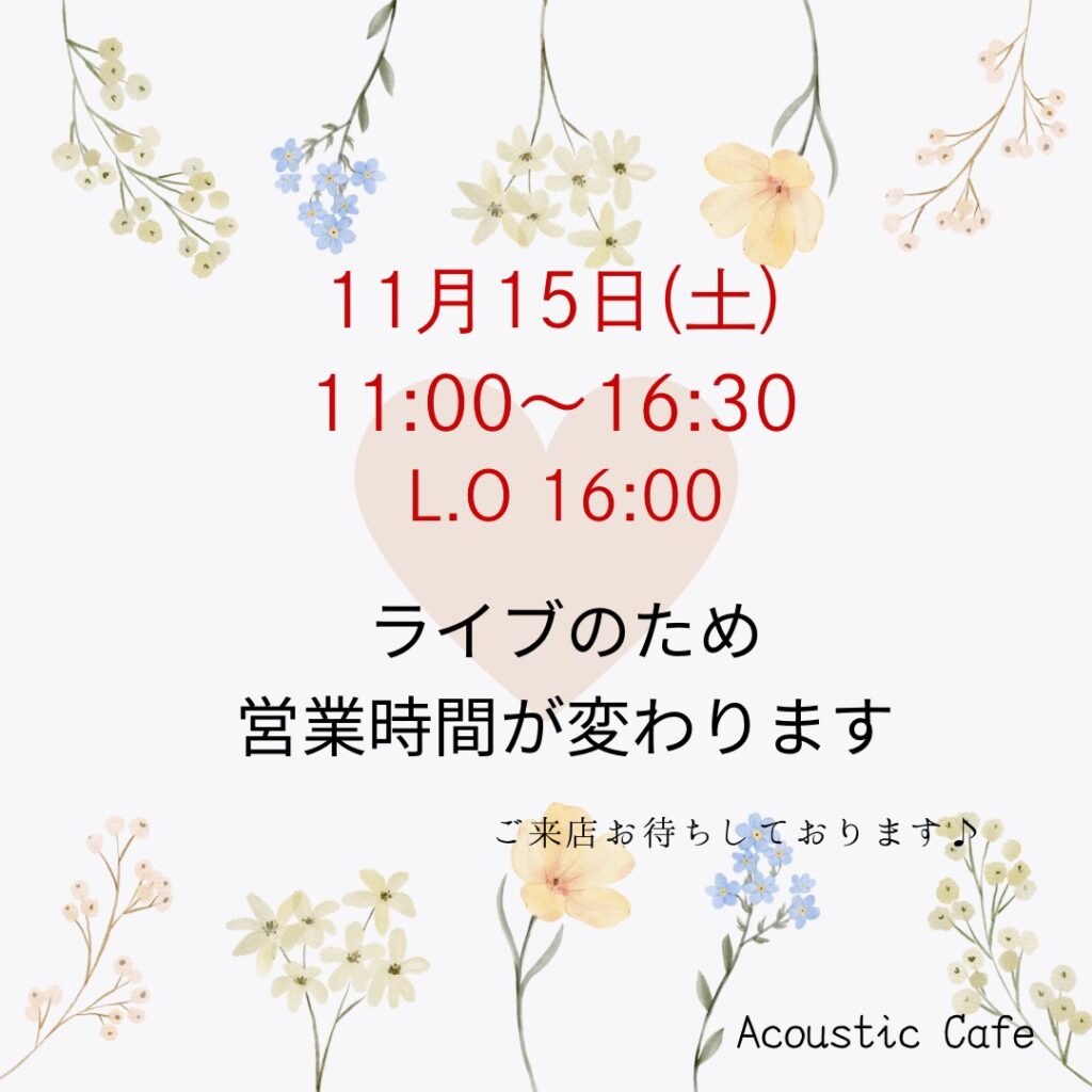 11月15日(土)の営業時間