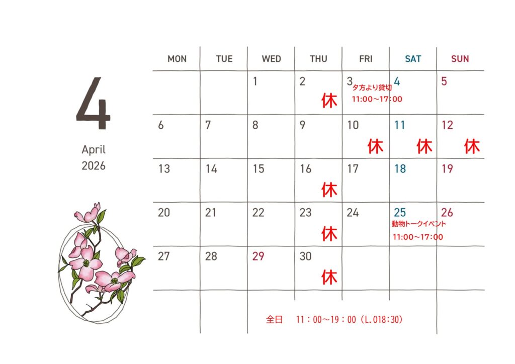 動物トークイベントのため17時までの営業になります。