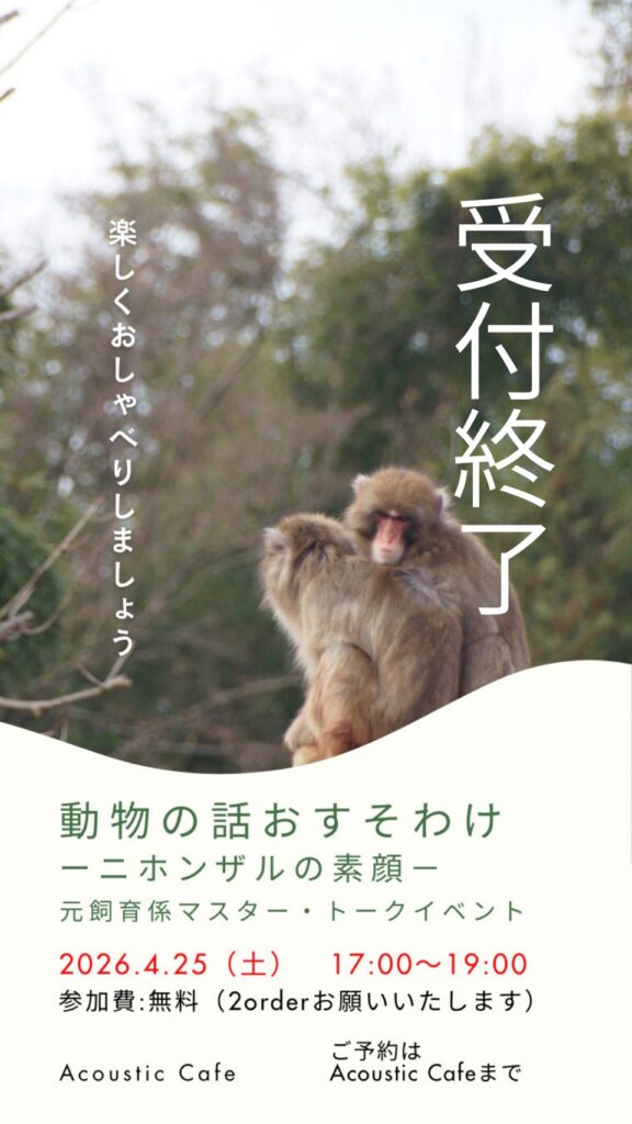 Acoustic Cafe初の試み、トークイベント「動物の話おすそわけ―ニホンザルの素顔-」